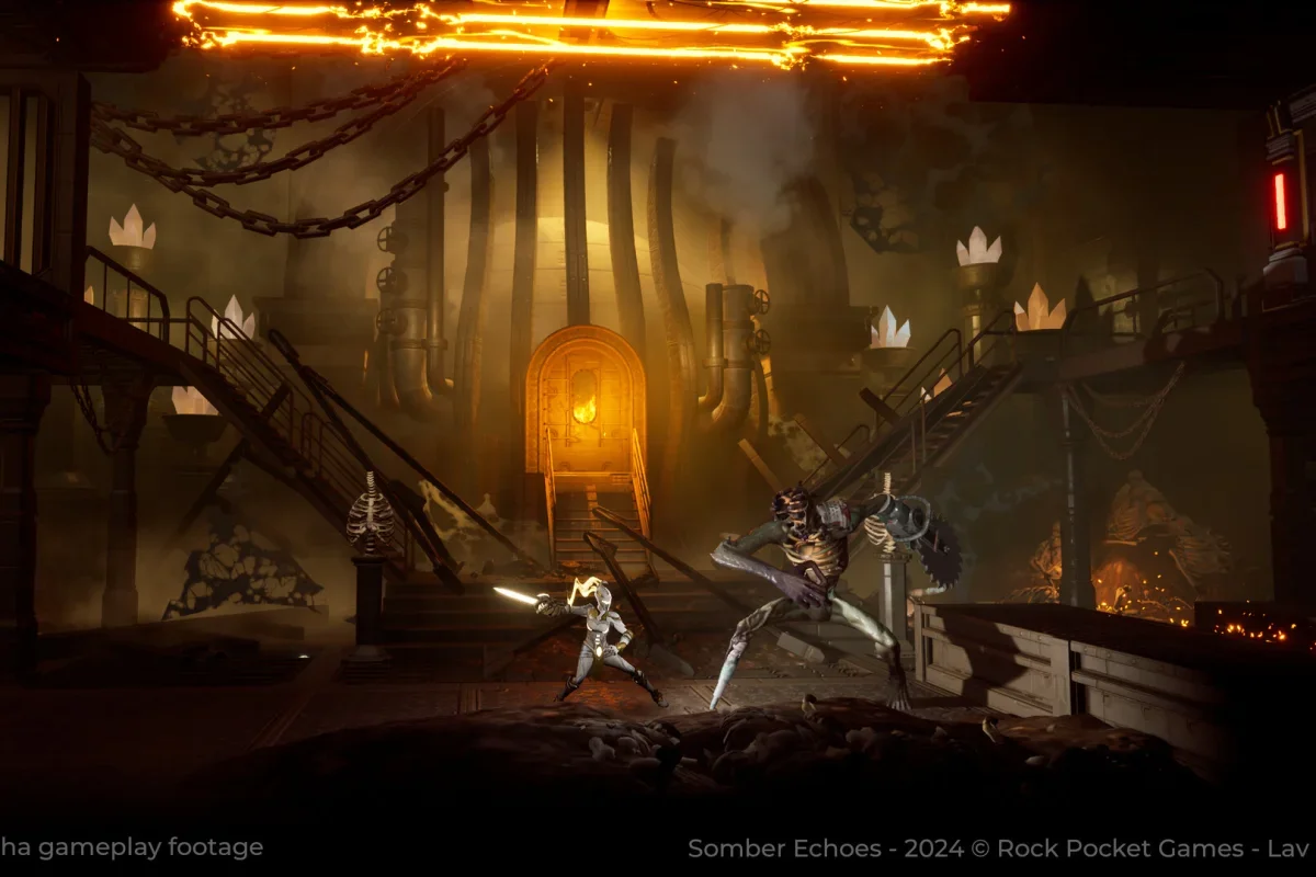 Описание: Somber Echoes — увлекательная метроидвания, погружающая игроков в мрачный и загадочный мир космического корабля Атромитос. Некогда величественный и процветающий, он превратился в заброшенное место, полное ужасов после катастрофического события. Вам предстоит взять на себя роль Адестрии и отправиться в опасное путешествие, чтобы отыскать свою сестру-близнеца Гармонию и остановить её разрушительные планы, угрожающие самой вселенной.