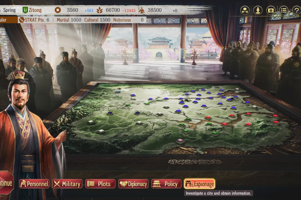 Ваши решения важны не только на поле боя, но и в управлении государством. В «Парламенте», собирающемся ежеквартально, вы определяете приоритеты — развитие армии, укрепление экономики или ведение дипломатии. Между заседаниями вы занимаетесь управлением городами: строите здания, нанимаете войска, улучшаете инфраструктуру и взаимодействуете с другими офицерами.