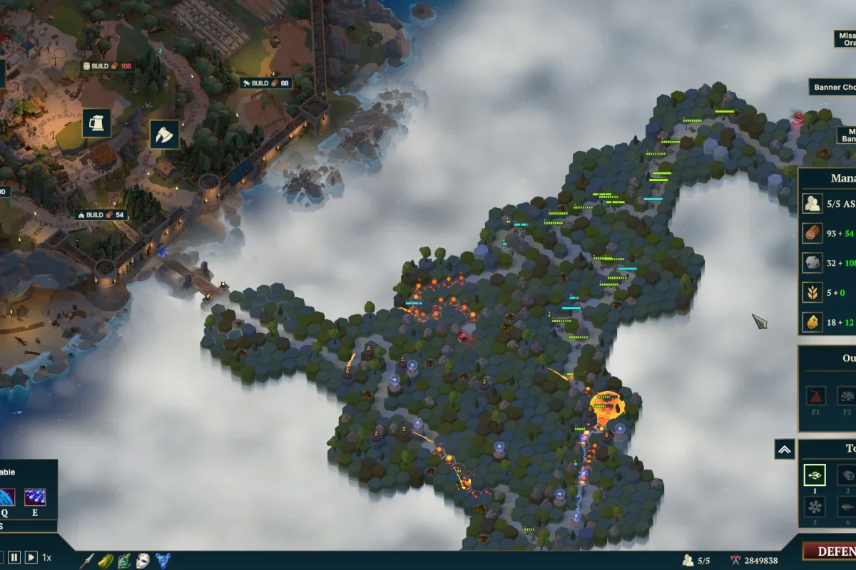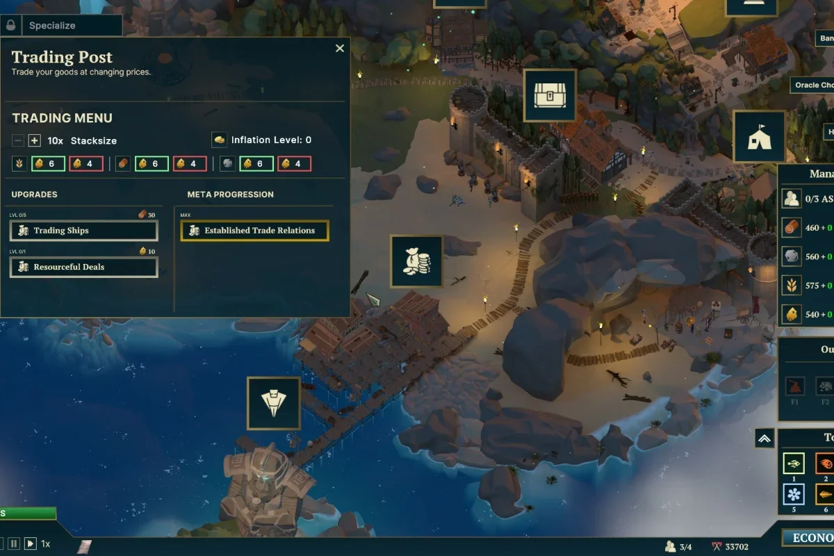 Основу геймплея составляет управление поселением: игрок строит и развивает инфраструктуру, включая 20 типов зданий — от ферм и складов до кузниц и алтарей. Экономика становится опорой для обороны, ведь именно ресурсы позволяют возводить и улучшать защитные башни. Всего доступно 8 видов башен, каждая из которых имеет уникальные свойства: одни замораживают, другие наносят урон по площади, третьи усиливаются за счёт взаимодействия с героем или реликвией.